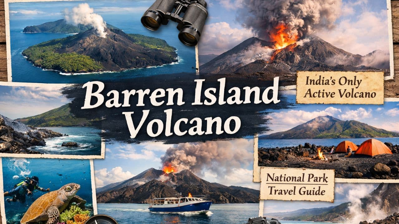 Barren Island Volcano Travel Guide: अंडमान में स्थित बैरन आइलैंड भारत का इकलौता सक्रिय वोल्केनो है। समुद्र के बीच बसे इस अनोखे नेशनल पार्क में लावा चट्टानें, दुर्लभ समुद्री जीव और रोमांचक नजारे देखने को मिलते हैं। जानें यहां कैसे पहुंचे और यात्रा के जरूरी टिप्स।