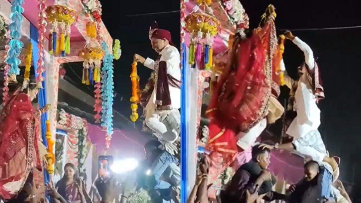 दूल्हा-दुल्हन की वरमाला बनी दही हांडी जैसा इवेंट, लोगों ने लिए जमकर मजे, वीडियो इंटरनेट पर वायरल