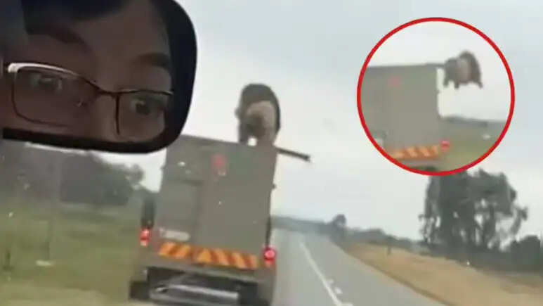 60 मील की रफ्तार में चलते ट्रक की छत से कूदा शेर, सड़क पर मचा हड़कंप