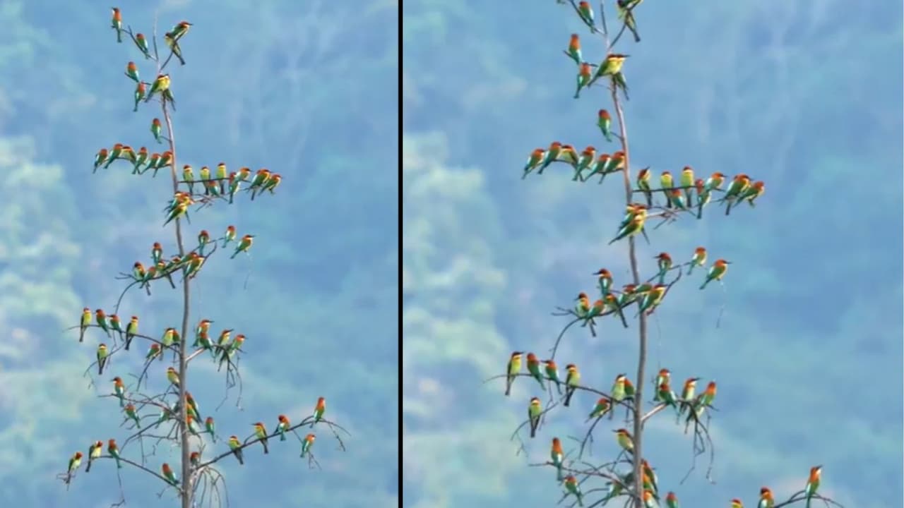 Amazing Picture Of Birds : तमिलनाडु के अन्नामलाई टाइगर रिज़र्व का एक वीडियो वायरल है, जिसमें हज़ारों 'चेस्टनट-हेडेड बी-ईटर' पक्षी एक सूखे पेड़ पर बैठे हैं। IAS सुप्रिया साहू द्वारा साझा यह वीडियो प्रकृति की अद्भुत सुंदरता और पक्षियों के 'ऑर्केस्ट्रा' को दिखाता है।