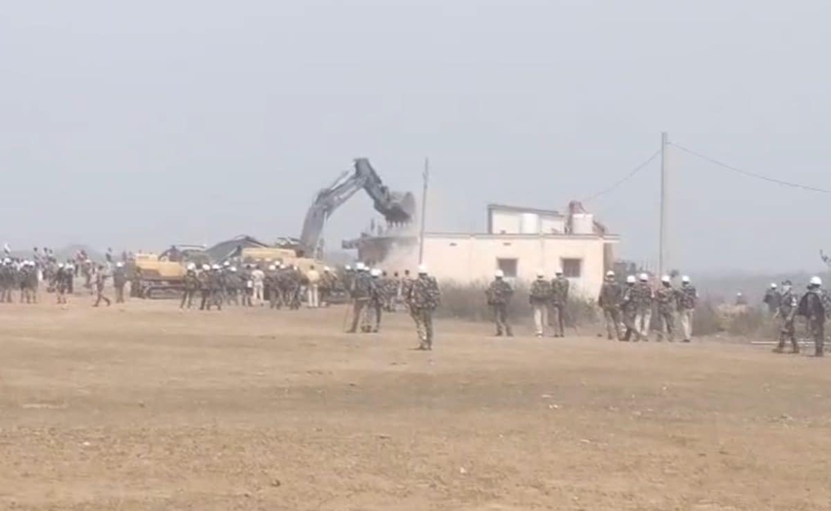 कांग्रेस नेता के घर पर चला बुलडोजर, भारी पुलिस बल की तैनाती में खाली कराई गई खनन क्षेत्र की जमीन