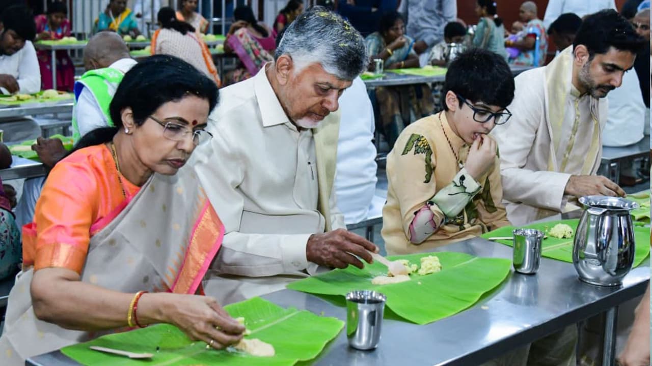 आंध्र प्रदेश के मुख्यमंत्री N.चंद्रबाबू नायडू और उनके परिवार की तस्वीरें सोशल मीडिया पर वायरल हो रही हैं। जहां उन्होंने अपने पोते के जन्मदिन पर भगवान श्री वेंकटेश्वर के मंदिर में आम इंसान की तरह सेवा की। साथ ही दर्शन के लिए कोई VVIP प्रवेश नहीं किया।
