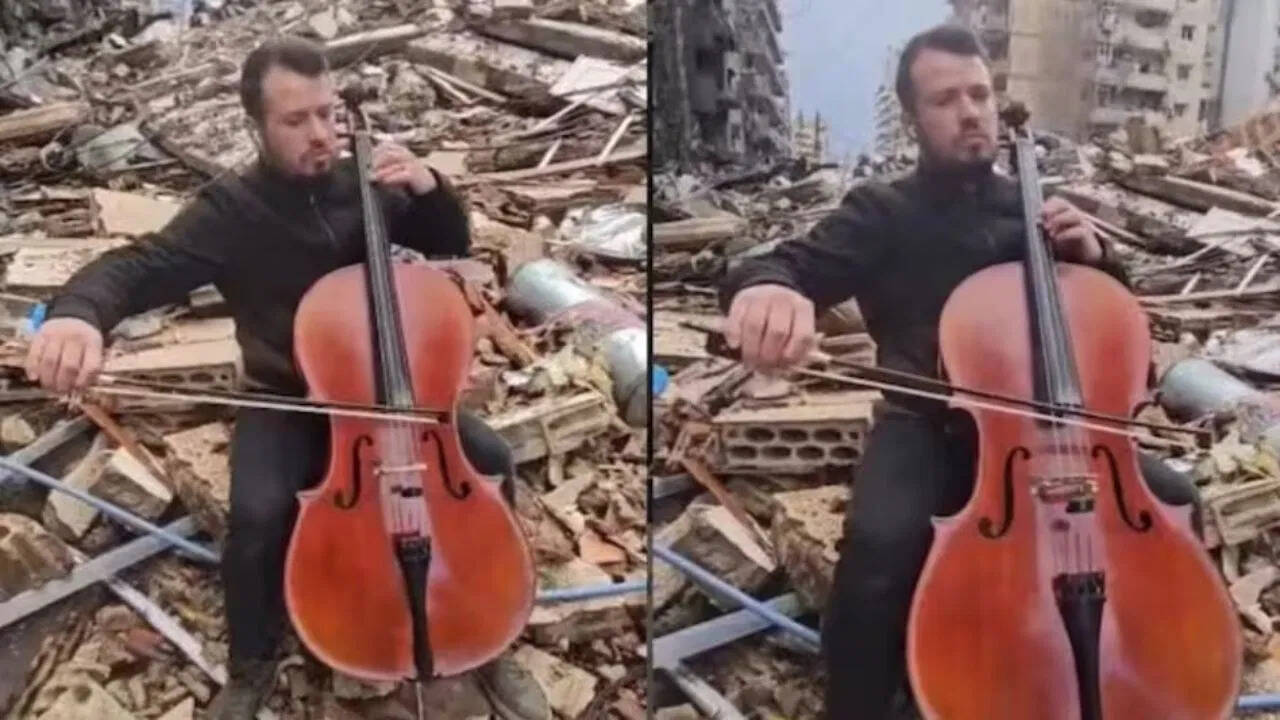जंग के बीच सुकून की धुन, तबाही के मंजर में सेलो बजाते शख्स का VIDEO वायरल