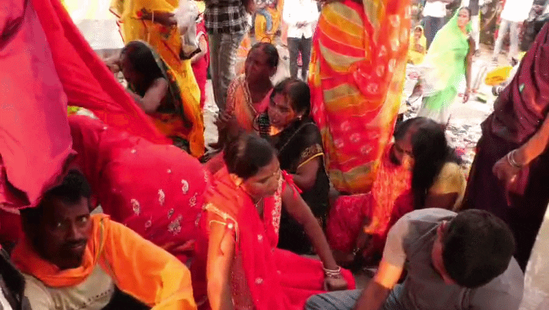 बिहार के रोहतास में लगने वाले मेले में बाल खोलकर खूब चीखती चिल्लाती महिलाएं.