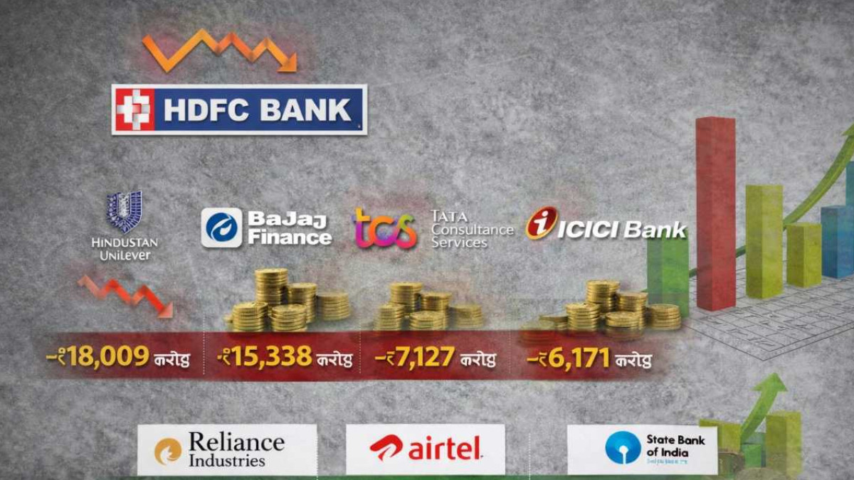 भारतीय शेयर बाजार में पिछले हफ्ते हल्की गिरावट के बीच देश की टॉप कंपनियों को बड़ा झटका लगा। टॉप-10 सबसे वैल्यूएबल कंपनियों में से पांच कंपनियों का कुल मार्केट कैप करीब 1 लाख करोड़ रुपये घट गया, जिसमें सबसे ज्यादा नुकसान एचडीएफसी बैंक को हुआ।