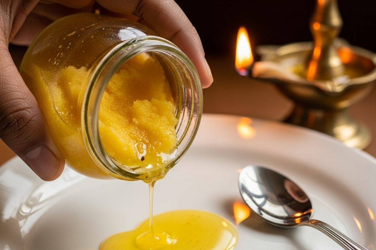 घी की शुद्धता पहचानें हथेली टेस्ट खुशबू स्वाद फ्रिज पानी और जलाकर जांच से मिलावटी घी से बचें और परिवार को शुद्ध घी दें. आजकल बाजार में कई मिलावटी सामान मिलता है. ऐसे में जरूरी है कि आप असली और शुद्ध घी की पहचान करना जानें. नीचे दिए गए आसान घरेलू तरीकों से आप खुद घी की शुद्धता जांच सकते हैं.