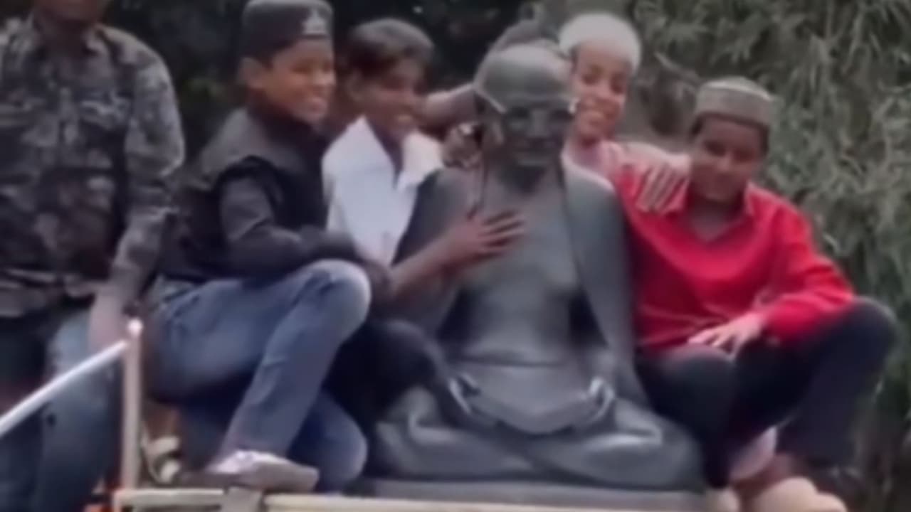 यूपी के बरेली में गांधीजी की मूर्ति पर चढ़े लड़के, वीडियो बनाकर कीं अश्लील हरकत-WATCH