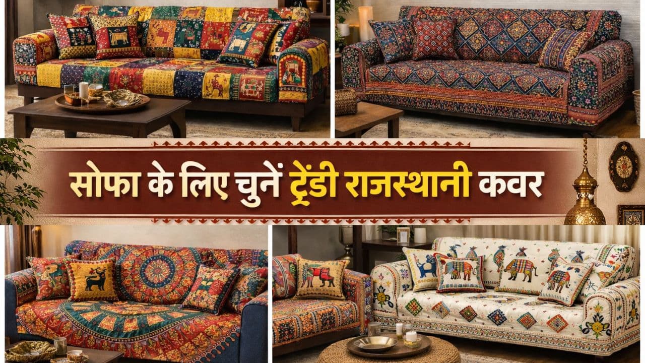Rajasthani Sofa Cover Designs: समर के लिए ट्रेंडी राजस्थानी सोफा कवर डिजाइन आइडियाज जानें। ब्लॉक प्रिंट, बंधनी, पेस्टल और पैचवर्क कवर से अपने सिंपल लिविंग रूम को दें मॉडर्न, एस्थेटिक और फ्रेश लुक आसान तरीके से।