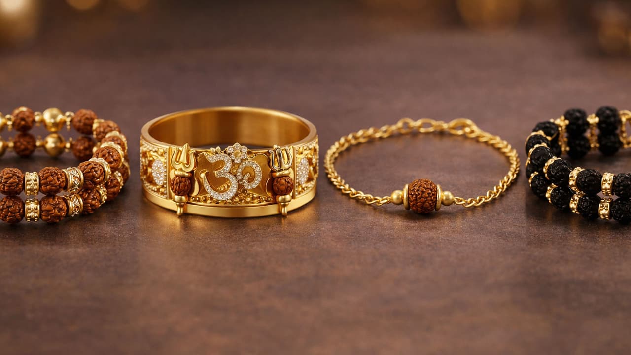 Rudraksha Bracelet: शिव भक्तों के लिए खास! जानें 5 ग्राम में बनने वाले गोल्ड रुद्राक्ष ब्रेसलेट के लेटेस्ट डिजाइन- डबल लेयर, कड़ा, चेन और ब्लैक रुद्राक्ष स्टाइल जो देंगे आध्यात्मिक और मॉडर्न लुक।