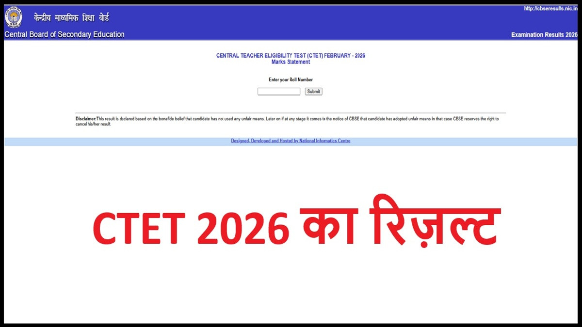 केंद्रीय माध्यमिक शिक्षा बोर्ड (CBSE) ने CTET 2026 का रिज़ल्ट आधिकारिक वेबसाइट ctet.nic.in पर जारी कर दिया है। इस बार CTET का यह 21वां एडिशन था, जिसका इंतजार लाखों उम्मीदवारों को था। परीक्षा 7 और 8 फरवरी 2026 को देशभर के लगभग 140 शहरों में दो शिफ्ट में आयोजित की गई थी। वहीं पेपर-2 के कुछ केंद्रों पर 1 मार्च को दोबारा परीक्षा कराई गई थी।