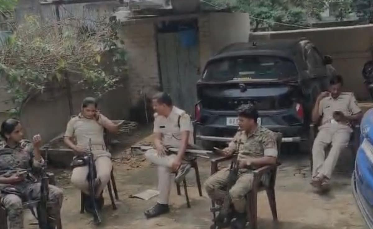 बिहार में DRDA के निदेशक वैभव कुमार के ठिकाने पर EOU की छापामारी के दौरार बाहर पुलिस फोर्स तैनात.