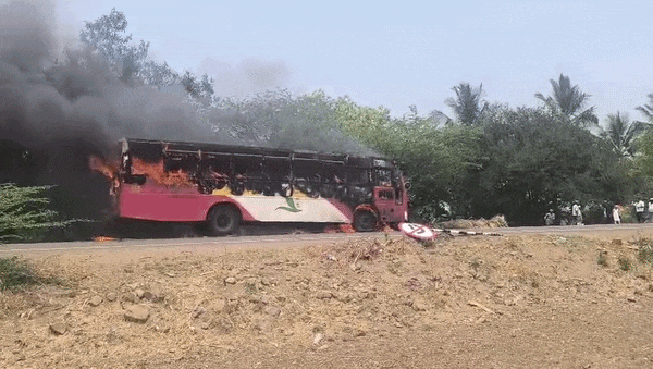 बस से टक्कर के बाद लगी भीषण आग, बाइक सवार जिंदा जला, वीडियो देख रूह कांप उठेगी