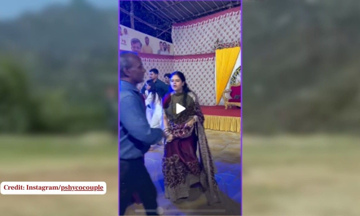 शादी समारोह में एक महिला के मज़ेदार डांस का वीडियो वायरल हो रहा है. महिला अपने पति के साथ बैठकर खाना खा रही होती है, तभी उसका पसंदीदा गाना बजने लगता है. महिला उस गाने को सुनते ही खाना छोड़कर डांस फ्लोर पर भागती चली जाती है. बीच में उसे खाने का भी ध्यान है, ऐसे में तुरंत उस ओर आती है और पति के हाथों निवाला लेकर डांस फ्लोर पर नाचने चली जाती है. भारी लहंगे वाली साड़ी में महिला के इस बिंदास अंदाज़ को लोग सोशल मीडिया पर खूब पसंद कर रहे हैं.