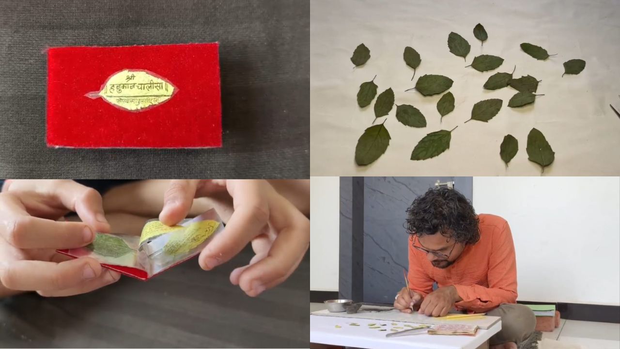 हनुमान जन्मोत्सव : नीमच के कलाकार की अद्भुत कला, तुलसी के पौधे के पत्तों पर लिख दी संपूर्ण हनुमान चालीसा