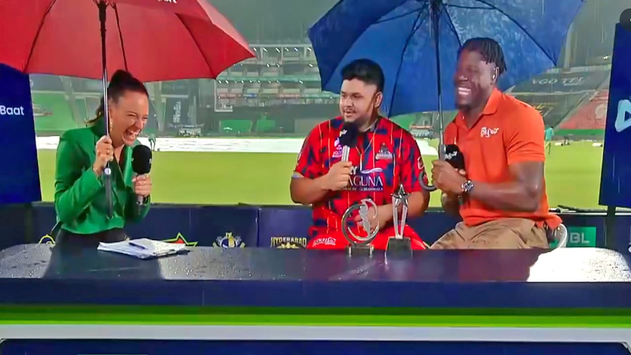 पाकिस्तान सुपर लीग: इंटरव्यू के बीच प्रेजेंटर को निकालनी पड़ी छतरी, Watch Video