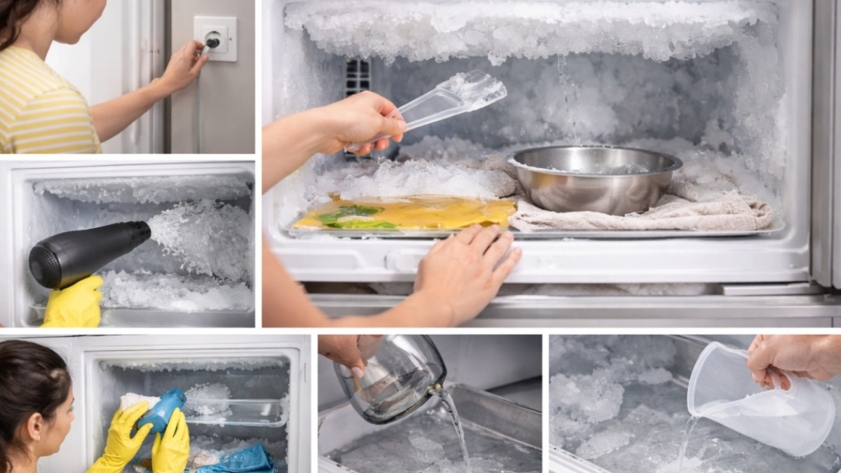 सबसे आसान तरीका है कि फ्रिज को बंद कर दें और दरवाजा खुला छोड़ दें। कुछ समय में बर्फ खुद ही पिघलने लगेगी। नीचे एक बर्तन रख लें ताकि पानी इकट्ठा हो सके।
