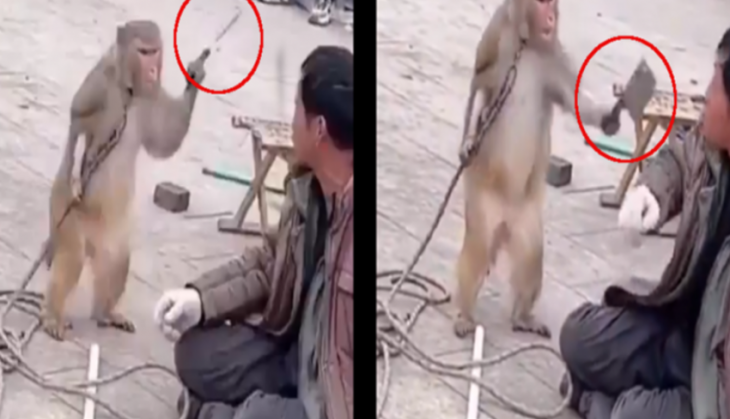 खेल दिखाते हुए परेशान हुआ बंदर, चाकू लेकर करने लगा मदारी पर हमला, देखिए फिर क्या हुआ