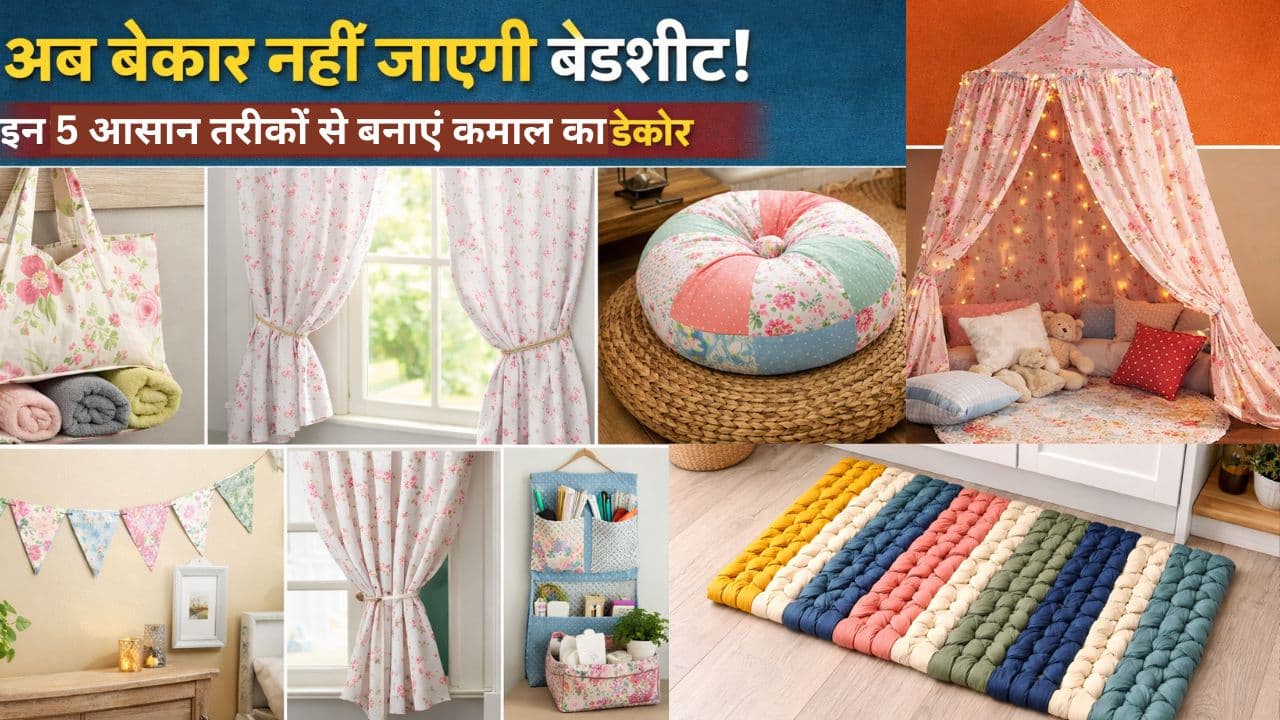 Waste Bedsheet Reuse Hacks: पुरानी बेडशीट को फेंकने की बजाय इन 5 आसान DIY आइडियाज से बनाएं कुशन कवर, परदे, टेबल क्लॉथ, स्टोरेज बैग और डोरमैट। कम खर्च में घर को दें नया और स्टाइलिश लुक, जानें आसान तरीके।