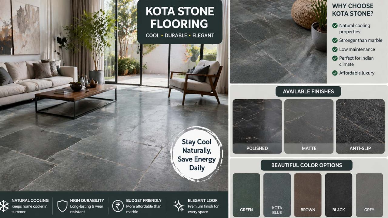 Kota Stone Benefits: गर्मियों के दौरान घर को ठंडा रखने के लिए कोटा स्टोन फ्लोरिंग एक बेहतरीन और किफायती ऑप्शन है। मार्बल की तुलना में सस्ता होने के साथ-साथ, यह नेचुरल ठंडक भी करता है।