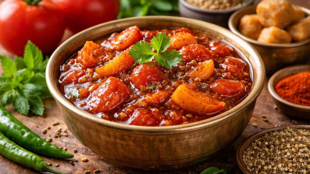 Tomato Launji Recipe: आप अगर अपने रोज़मर्रा के खाने में थोड़ा सा ट्विस्ट लाना चाहते हैं, तो टमाटर की लौंजी एक शानदार ऑप्शन है। इसका खट्टा-मीठा स्वाद दाल-चावल से लेकर पूरी-पराठे तक हर डिश के साथ परफेक्ट लगता है। खास बात यह है कि इसे बनाने में ज्यादा मेहनत नहीं लगती और यह जल्दी तैयार हो जाती है।
