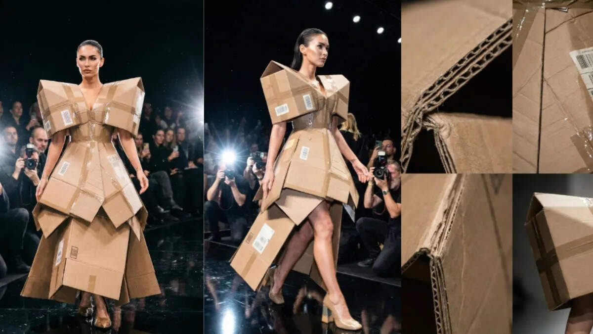 कार्डबॉक्स से बनी अनोखी ड्रेस वायरल, मॉडल का लुक देखकर हैरान हुए लोग