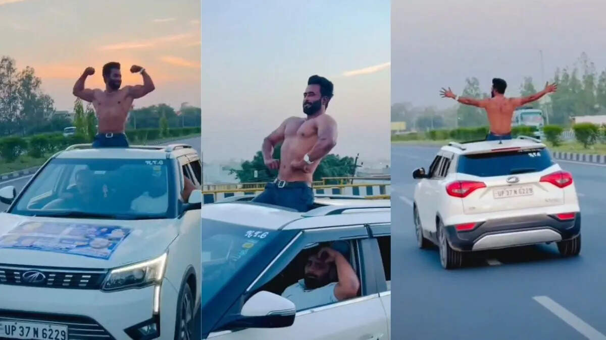 हापुड़ में सनरूफ से निकलकर रील बनाना पड़ा महंगा, युवक पर 21,500 रुपये का चालान