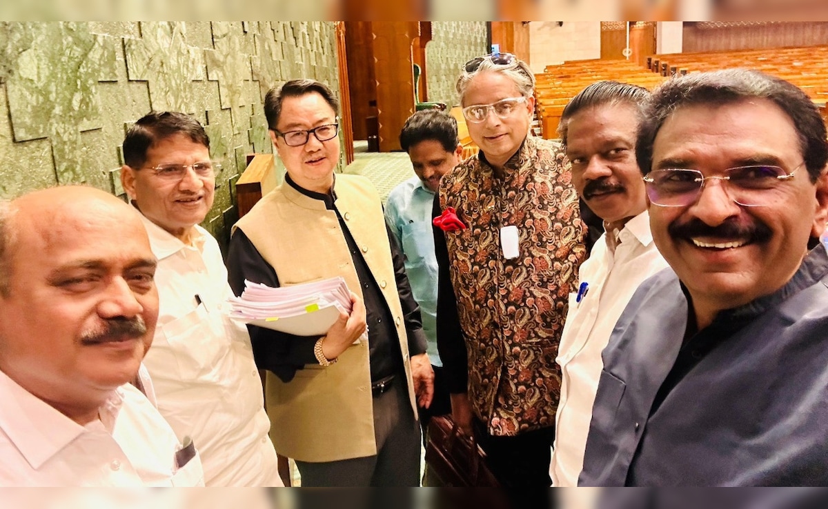 शशि थरूर समेत कई विपक्षी सांसदों के साथ शनिवार को संसदीय कार्य मंत्री किरेन रिजिजू ने मुलाकात की.