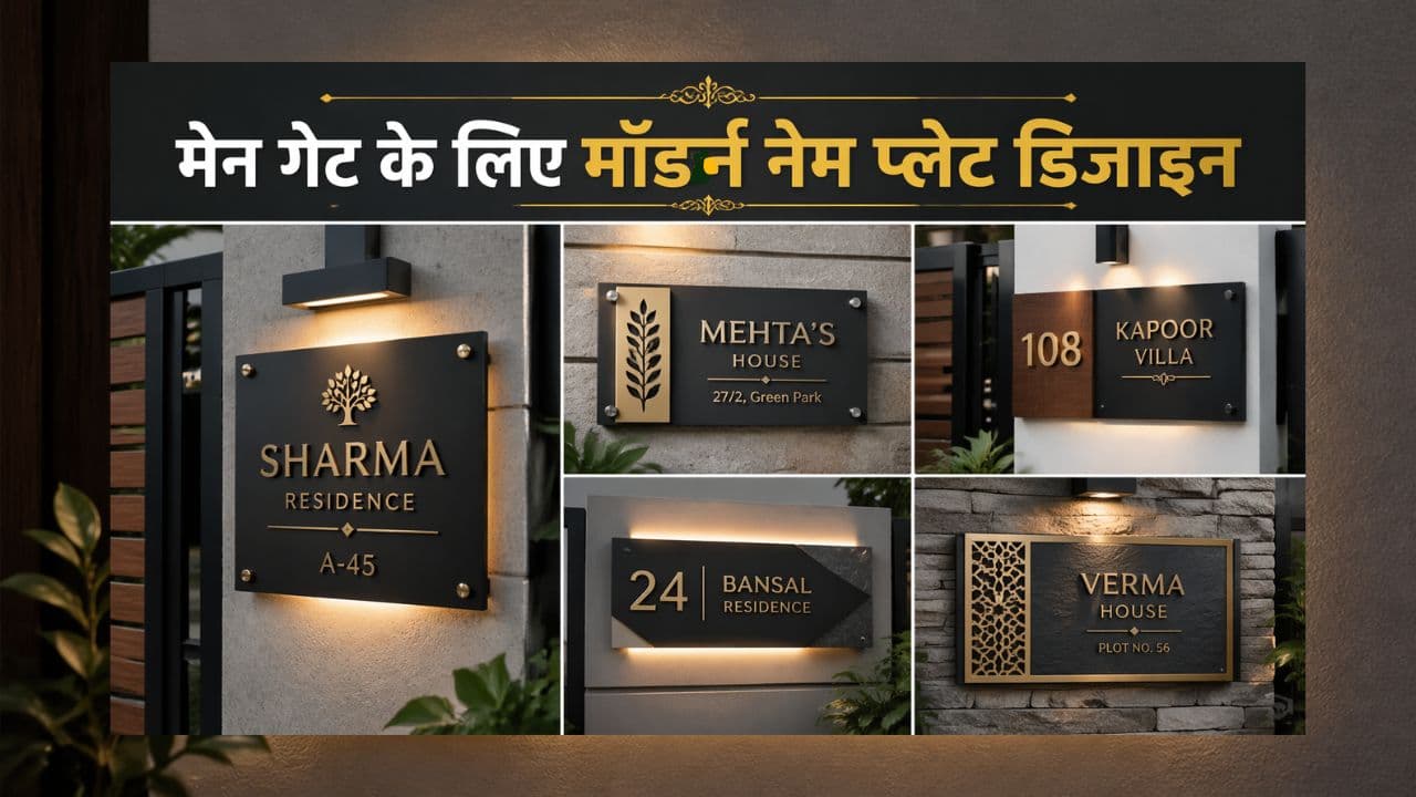 Main Gate Name Plate Designs: मेन गेट को लग्जरी लुक देना चाहते हैं? जानिए 5 मॉडर्न नेम प्लेट डिज़ाइन जैसे LED, वुडन, मेटल, ग्लास और मार्बल स्टाइल, जो आपके घर को होटल जैसा क्लासी और स्टाइलिश बना देंगे।