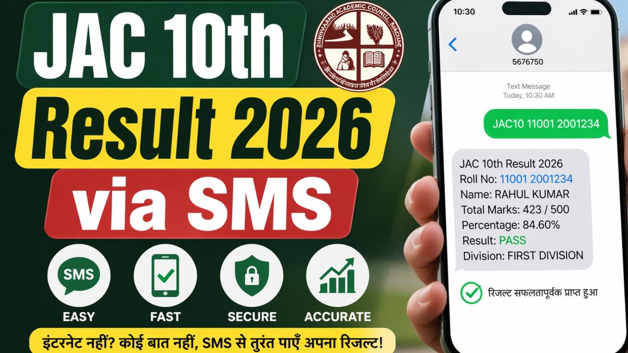 JAC 10th Result 2026 SMS Se Kaise Check Kare: झारखंड बोर्ड 10वीं रिजल्ट 2026 जल्द जारी होगा। मीडिया रिपोर्ट्स की मानें तो रिजल्ट की घोषणा आज-कल में कभी भी हो सकती है। ऐसे में जानें बिना इंटरनेट SMS से झारखंड बोर्ड मैट्रिक रिजल्ट कैसे चेक करें? साथ ही जानें ऑनलाइन रिजल्ट चेक करने का आसान तरीका, डायरेक्ट लिंक और लेटेस्ट अपडेट।