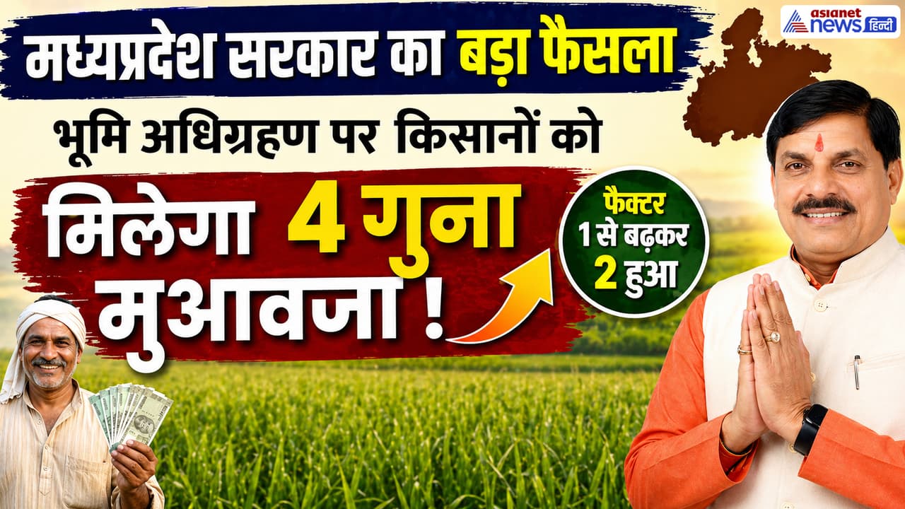मध्यप्रदेश सरकार ने किसानों को बड़ी राहत देते हुए भूमि अधिग्रहण पर मुआवजा 4 गुना तक बढ़ा दिया है। नया नियम 24 अप्रैल 2026 तक के मामलों पर लागू होगा। इससे किसानों की आय बढ़ेगी और विकास कार्यों में तेजी आएगी।