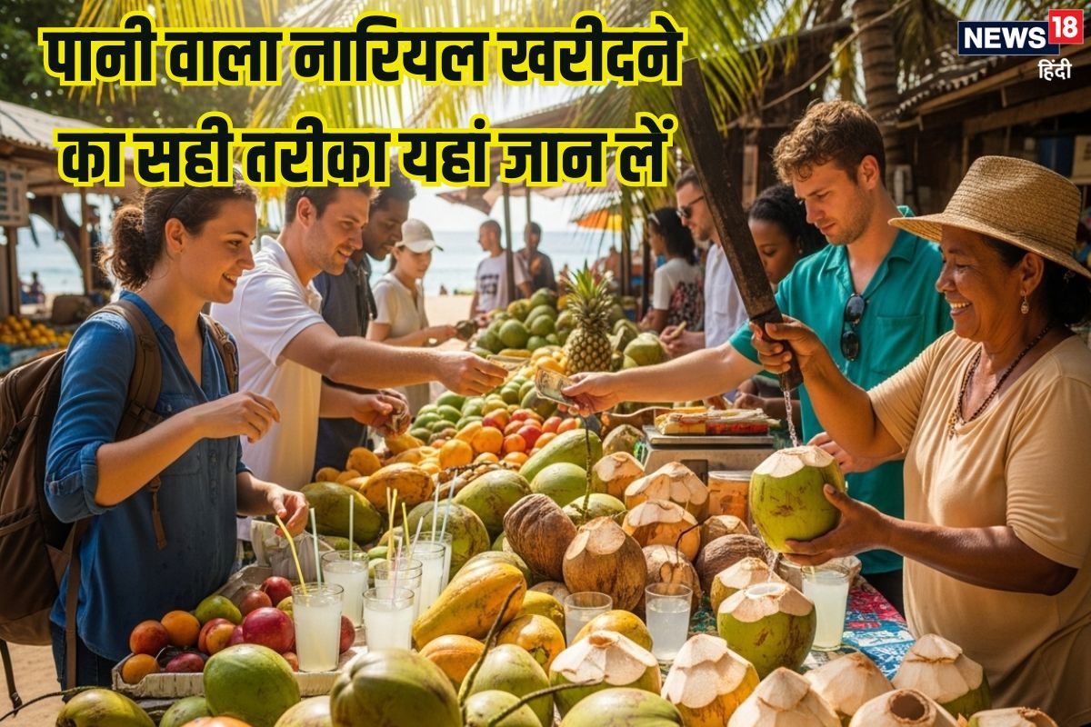 Tips to buy fresh coconut water: गर्मियों के दिनों में एनर्जी से भरपूर रहने और शरीर में इलेक्ट्रोलाइट्स की कमी न हो, इसके लिए नारियल पानी का सेवन खूब करना चाहिए. जब आप नारियल पानी खरीद कर पीते हैं तो कई बार पानी ही बेहद कम निकलता है. इससे पैसे भी लगता है बर्बाद हो गए. ऐसे में नारियल पानी खरीदने से पहले आप 6 तरीके से खुद ही चेक कर लें. यहां जानिए, पानी वाला नारियल खरीदने का सही तरीका क्या है?