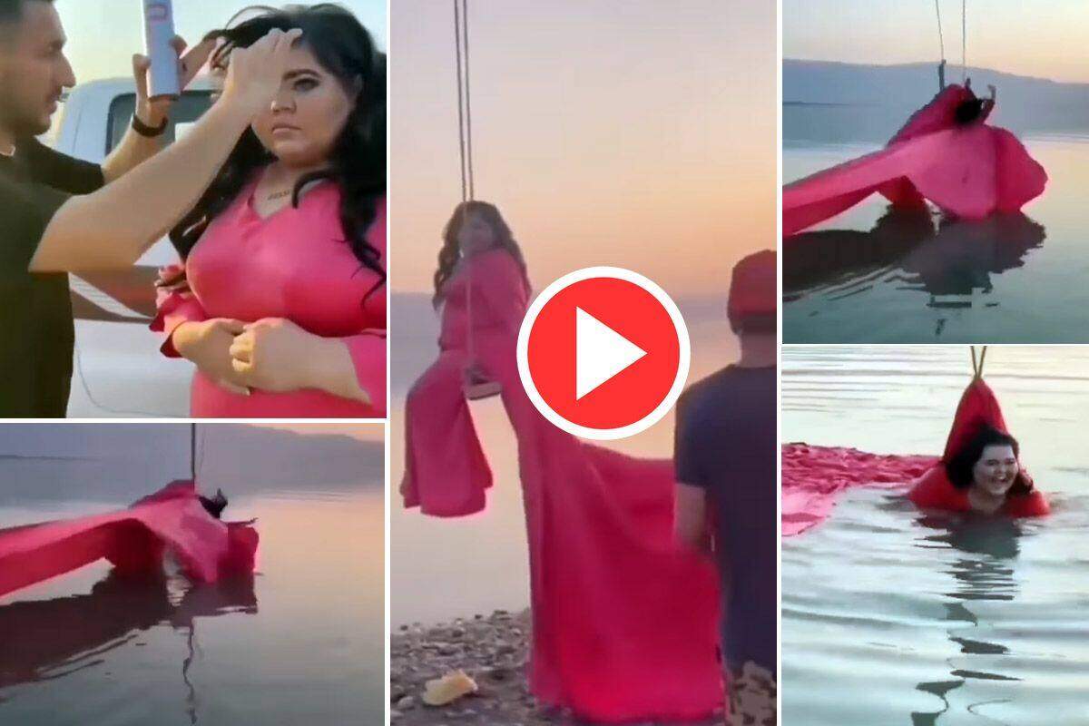 नदी किनारे फोटोशूट पड़ा भारी! लड़की के साथ हुआ मजेदार हादसा, वीडियो देख हंसते रह जाएंगे