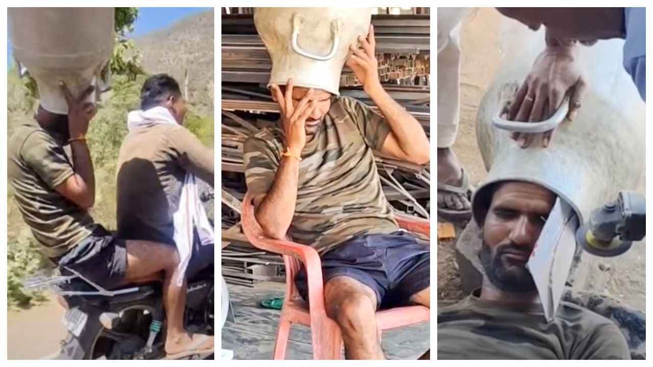 राजस्थान के अलवर जिले में एक शख्स को रील बनाना भारी पड़ गया. कलूराम नाम के इस आदमी ने गर्मी से बचने के लिए 15 लीटर की दूध की केतली सिर पर रख ली, जो वहीं फंस गई. बाद में लोगों की मदद से उसे हार्डवेयर की दुकान ले जाया गया, जहां कटर से केतली को काटना पड़ा.